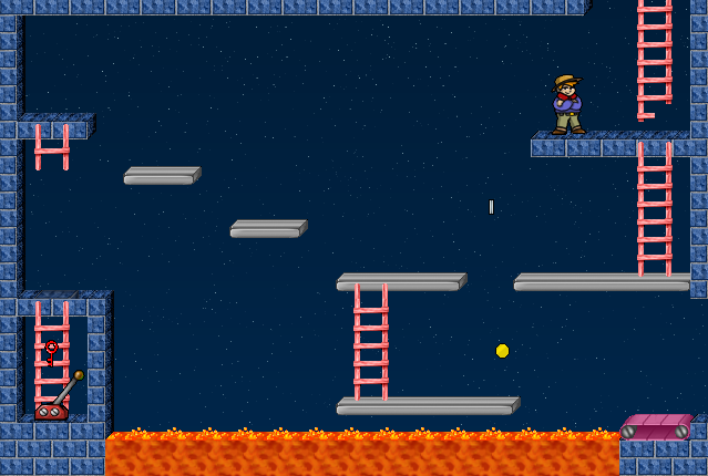 Room 17499 is still under maintenance but I used ten spare minutes for a few changes starting with a safer ledge in the upper left corner. There Jack's progress to the red key is with the short ladder. And that is supposed to be a reminder or a lesson as help for what is going on at the other side of the room.