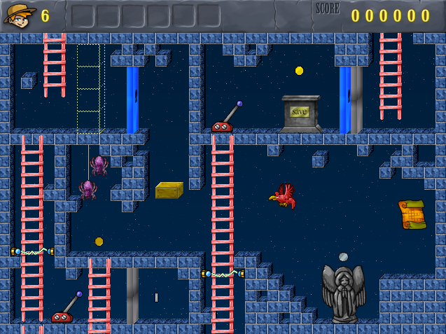 The pic shows the 7th save pedestal in the mansion. I am not pleased anymore with the position of this save. With the changed concept it is to close after the previous saving point and only 2 coins away from TZ 2.