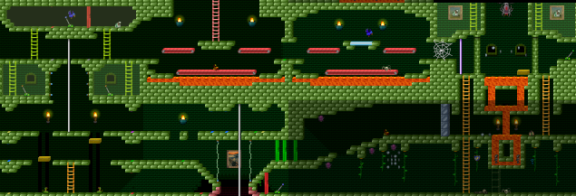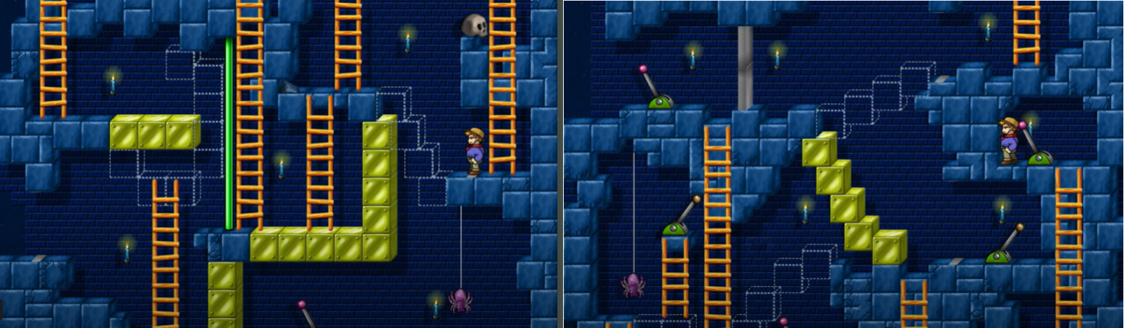 On the left image Jack came from the left. Standing on the gold blocks he jumped down to the right. His only way to continue was by climbing the ladder to arrive in the room above (right image).