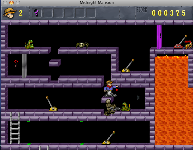 2. Graphics and music are not my priorities right now (maybe later). But the flow is!! I have tried to make a mansion with a lot of curves in it, often leading to multiple visits of a room. I also tried to take care that Jack nearly always has something to do, while avoiding too much danger or backtracking. Did that work out?