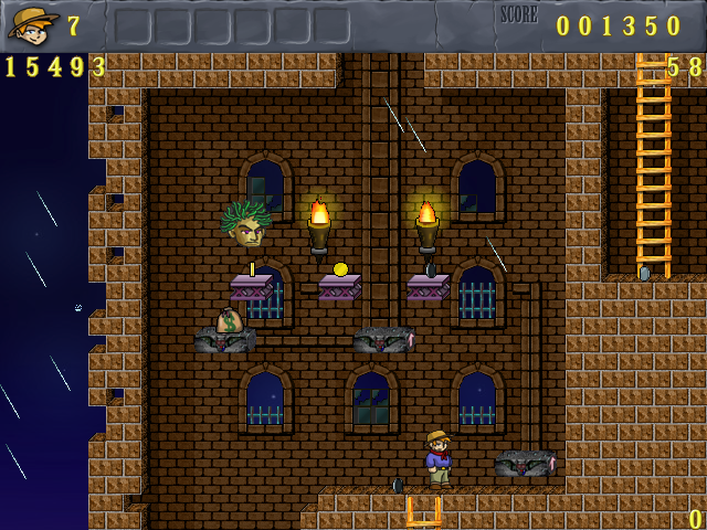 About the design there I have nearly no remarks for corrections: a few places where money (bags) could be catched early by jumping from below, one single spot where an insane squirrel jump leads to a half Jack-stuck (forced offer of a life) and one room where sinking platforms were half covering torches.