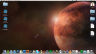 Here's my desktop. Nothing too fancy. I have my backgrounds running randomly through planets from the various loading screens for Starcraft 2.