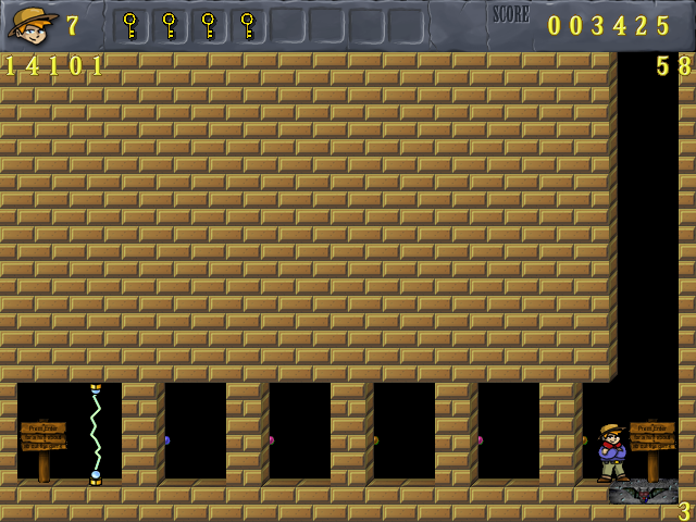 Pic c. Jack pulled the last lever to stop the zapper beam. But he was curious about what happened behind the last pilar. So he did not leave the room but retraced his steps. But now he can't go back to the left anymore.
