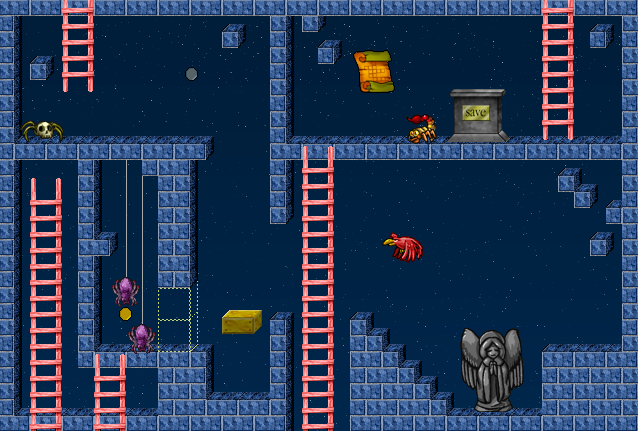 The situation with the not taken eyeball wan't meant to be but I didn't correct that because it had two interesting consequences. Using the platform needs a little bit of thinking and getting the most left coin also. ...