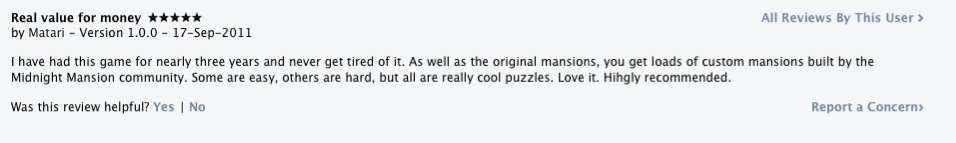 Hiya - i cannot leave a review even though I have tried every which way - it just tells me that I have to have bought the game from the Mac App Store, which I have. Can anyone else leave a review? If so, can you add one for me please? I feel strongly about leaving positive feedback so we can increase sales figures.