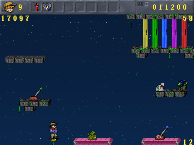 But his latest arrival in room 17098 was with no lives left and a HJS. He missed the climbing of the right ladder and is standing now at the very right with a game over. Again.